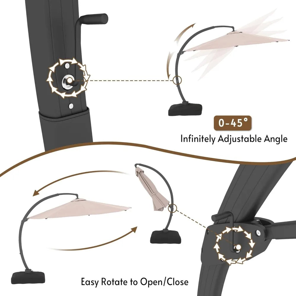 - 360° rotation and an offset cantilever design let you chase shade as the sun moves, with quick positioning for all-day comfort.
