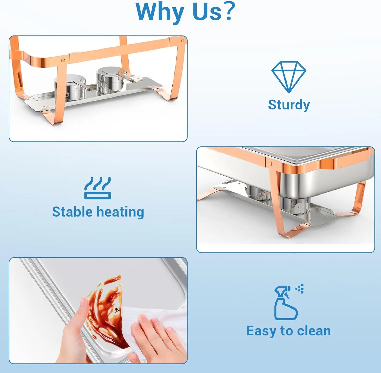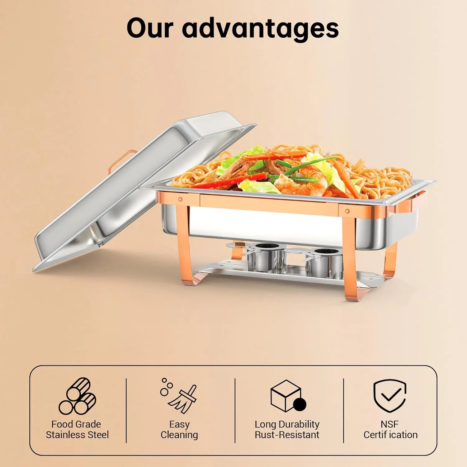- Complete buffet set for effortless service: includes a lid, food pan, water pan, fuel tray, and two fuel holders—perfect for parties and events.
