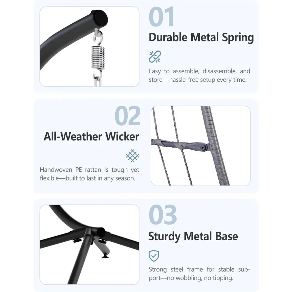 - Heavy-duty, rust-resistant construction: powder-coated steel frame with hand-woven all-weather wicker, designed for long-term resilience against sun, rain, and fading; supports up to 350 lbs.