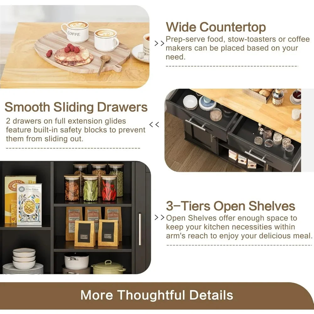 XMSJ Kitchen Island Cart With Storage On Wheels Shelves