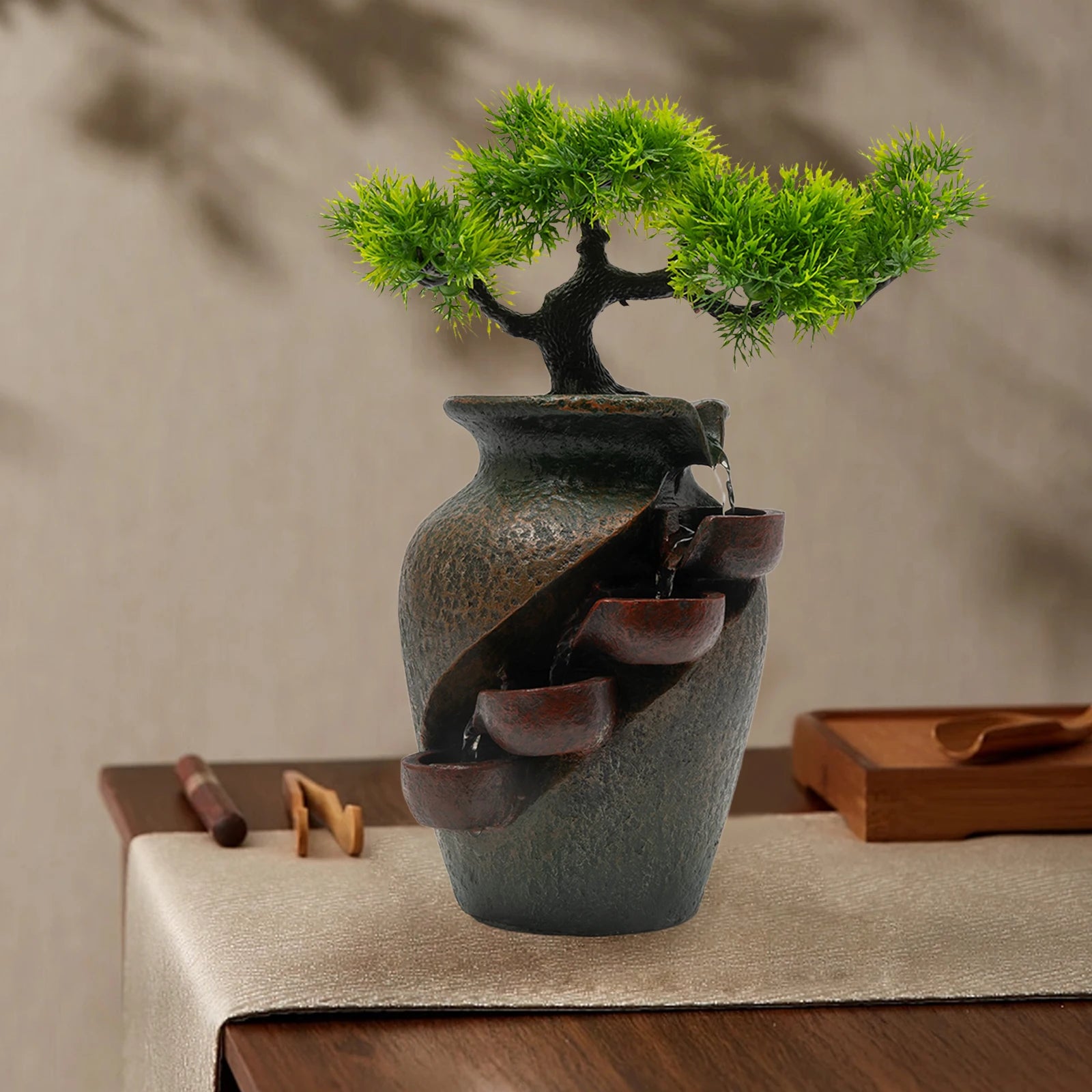 - Calming four-layer water cascade combined with a lifelike Thuja sculpture creates a peaceful focal point for meditation, focus, and everyday relaxation, perfect for living rooms, bedrooms, or office desks.