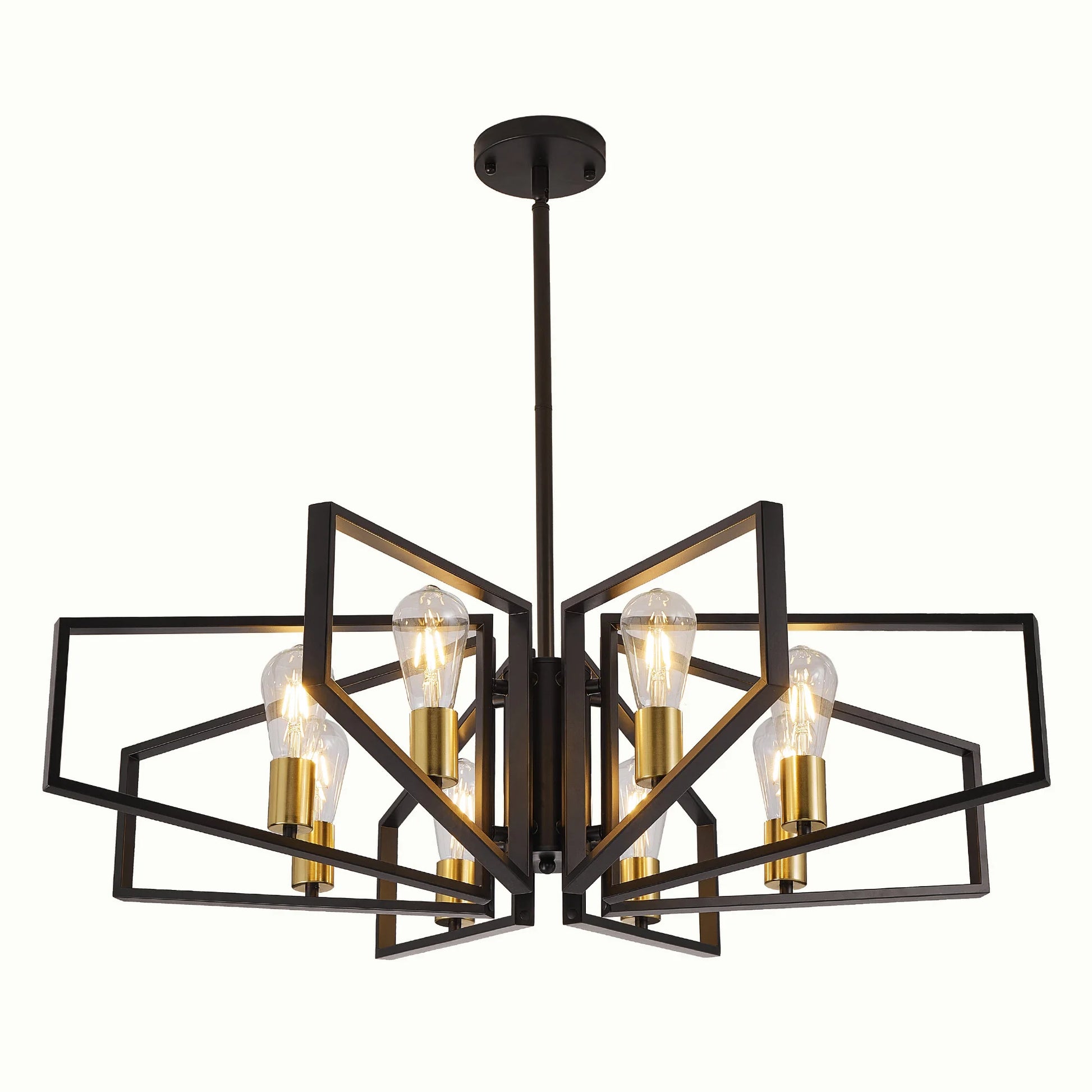 Modern 8-Light Geometric Chandelier Adjustable Height Metal Pendant Light Fixture for Living Room and Dining Areas